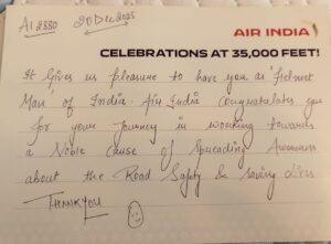एयर इंडिया ने 35 हजार फीट की ऊंचाई पर हेलमेट मैन ऑफ़ इंडिया’ को किया सम्मानित.