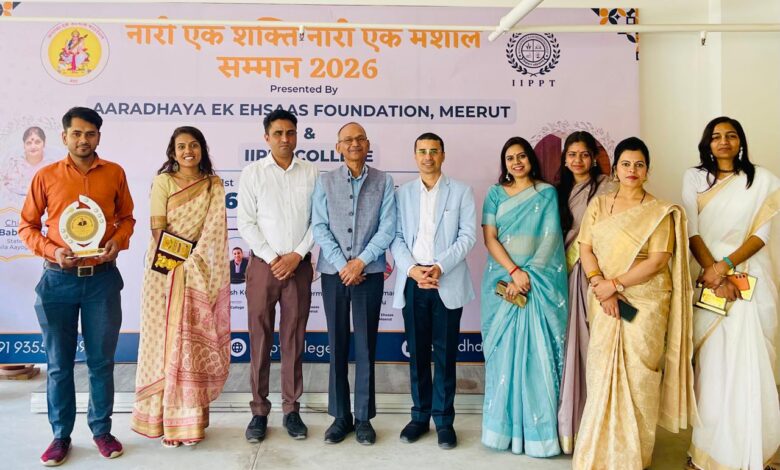 आज ग्रेटर नोएडा स्थित आईआईपीपीटी कॉलेज में “आराध्या एक अहसास फाउंडेशन” के तत्वावधान में “नारी एक शक्ति, नारी एक सम्मान–2026” विषय पर एक प्रेरणादायी एवं गरिमामय कार्यक्रम का सफल आयोजन किया गया। कार्यक्रम का उद्देश्य नारी सशक्तिकरण, सामाजिक जागरूकता तथा नारी सम्मान के प्रति सकारात्मक सोच को बढ़ावा देना था।