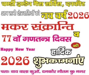 *आप सभी क्षेत्रवासियों को चंडी इंडेन गैस सर्विस वाय वाला कुआं दनकौर की तरफ़ से नव वर्ष 2026 व मकर संक्रान्ति व 77 वें गणतंत्र दिवस समारोह की हार्दिक शुभकामनाएं*