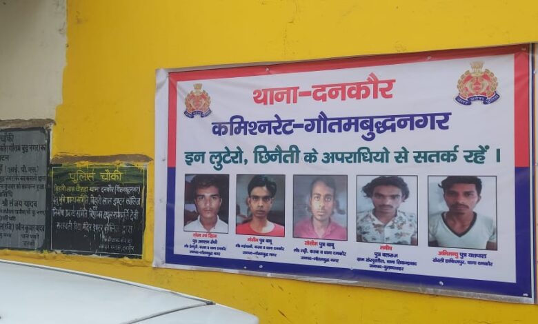 दनकौर पुलिस ने सक्रिय 5 बदमाशों के फोटो वाले बैनर लगाए, लोगों को किया सतर्क