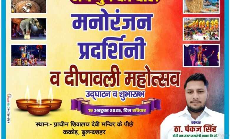 ककोड़ कस्बे में प्राचीन शिवालय देवी मंदिर के पास 19 अक्टूबर 2025 को रविवार के दिन “नये युग का बाल मनोरंजन प्रदर्शिनी व दीपावली महोत्सव” का आयोजन किया जा रहा है। इस मेले में मनोरंजन के विभिन्न कार्यक्रमों के साथ-साथ दीपावली महोत्सव की भी भव्य शुरुआत होगी।