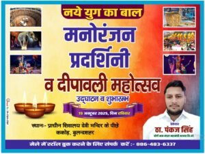 ककोड़ कस्बे में प्राचीन शिवालय देवी मंदिर के पास 19 अक्टूबर 2025 को रविवार के दिन “नये युग का बाल मनोरंजन प्रदर्शिनी व दीपावली महोत्सव” का आयोजन किया जा रहा है। इस मेले में मनोरंजन के विभिन्न कार्यक्रमों के साथ-साथ दीपावली महोत्सव की भी भव्य शुरुआत होगी।