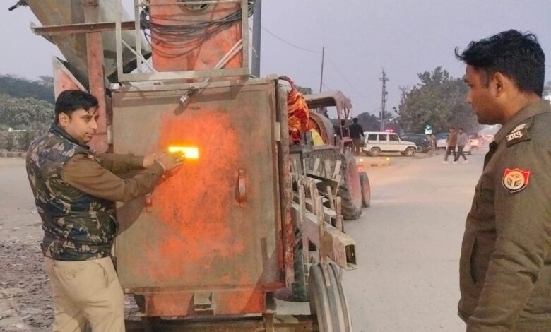 कोहरे को देखते हुए पुलिस ने वाहनों पर रिफ्लेक्टर लगाकर किया जागरूक