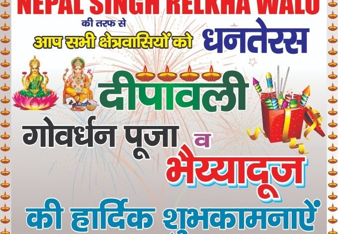 *आप सभी क्षेत्र वासियों को मा० नैपाल सिंह कसाना रीलखा वालों की तरफ से धनतेरस, दीपावली, गोवर्धन पूजा व भैय्यादूज की हार्दिक शुभकामनाएं*