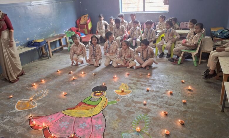 विद्यालय में दीपावली के उपलक्ष्य में हस्त निर्मित दीपक तथा रंगोली प्रतियोगिता में दिखाई प्रतिभा