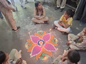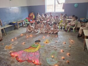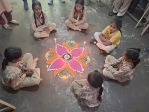 विद्यालय में दीपावली के उपलक्ष्य में हस्त निर्मित दीपक तथा रंगोली प्रतियोगिता में दिखाई प्रतिभा