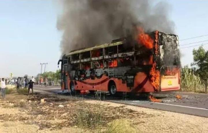 *राजस्थान में चलती बस में मची चीख-पुकार, आग लगने से करीब 12 लोगों की मौत*